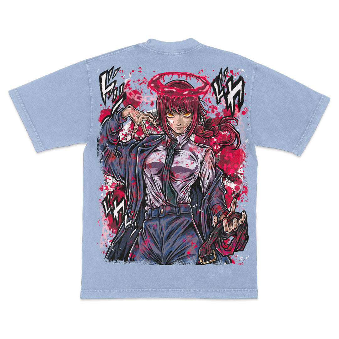 Premium Heavyweight Mineral Wash Tee W/ Vibrant Jumbo Size Featuring Makima The Control Devil, Using Her Manipulation Ability.