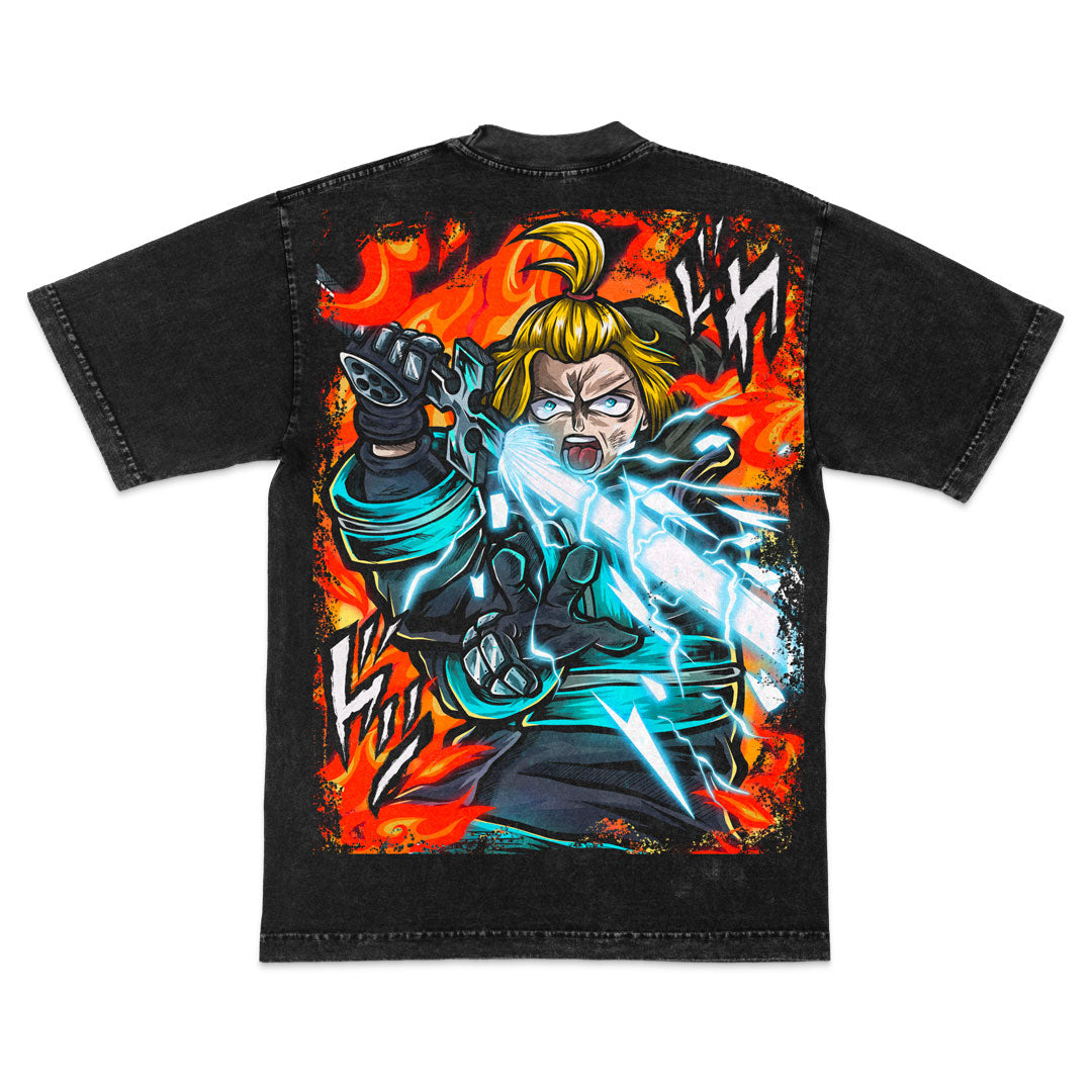 Premium Heavyweight Mineral Wash Tee W/ Vibrant Jumbo Size Featuring Arthur Boyle Using His Excalibur Plasma Sword.