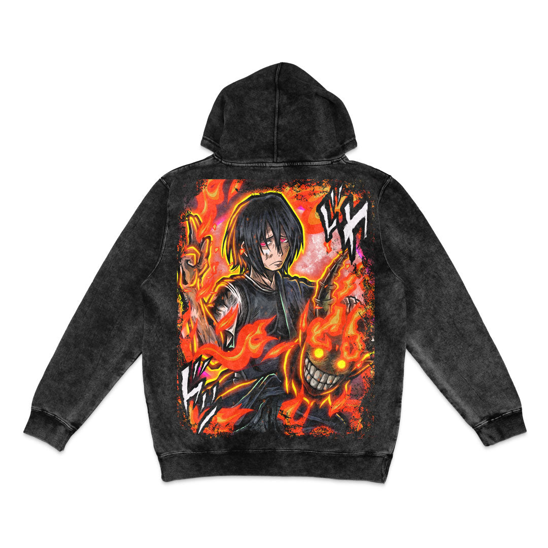 Premium Mineral Wash Hoodie W/ Vibrant Jumbo Size Featuring Benimaru Shinmon Using His Crimson Moon Ability To Defeat A Demon Infernal.