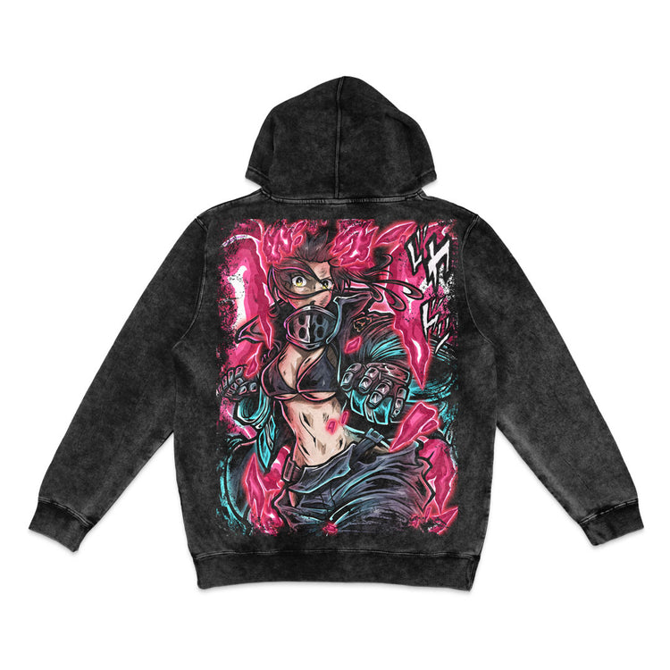 Premium Mineral Wash Hoodie W/ Vibrant Jumbo Size Featuring Tamaki Kotatsu Using Her Nekomata Ability.