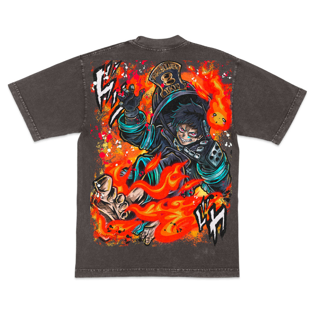 Premium Heavyweight Mineral Wash Tee W/ Vibrant Jumbo Size Print Featuring Shinra Kusakabe.